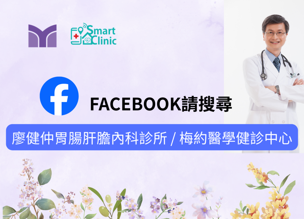 本院FB啟用將不定期更新資訊,歡迎民眾瀏覽使用作者: irene / 2026-03-13 官方臉書請搜尋: 廖健仲胃腸肝膽內科診所 / 梅約醫學健診中心 本院FB連結: https://www.facebook.com/profile.php?id=100093185784615